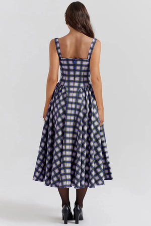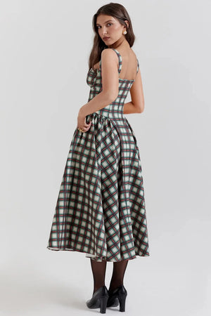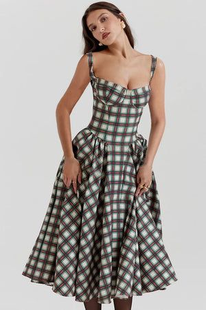 Upplev charmen från 50-talet med denna rutiga klänning som kombinerar retrostil med modern komfort. Perfekt för både vardagliga stunder och speciella tillfällen när du vill känna dig både feminin och självsäker.