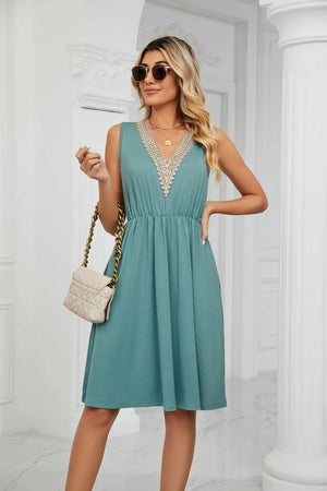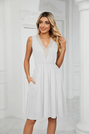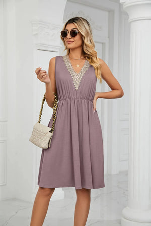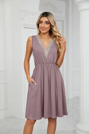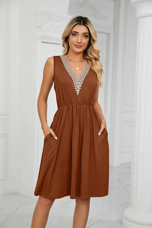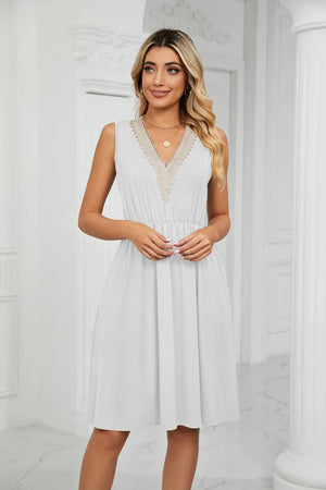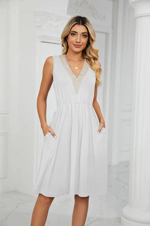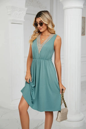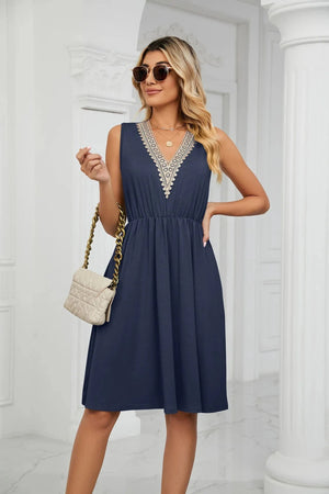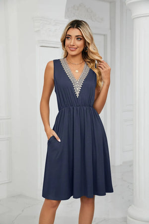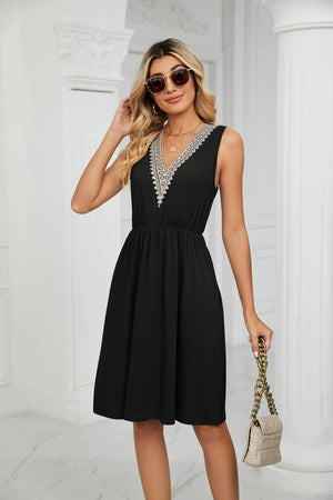 A-linje klänning med broderad v-ringning: enkel elegans för varje tillfälle