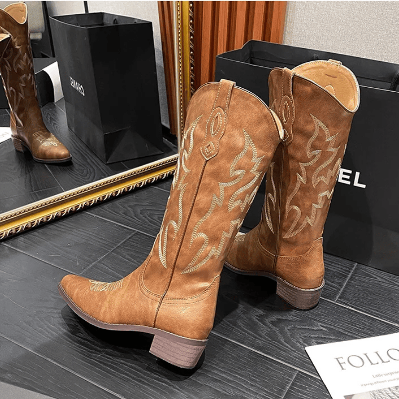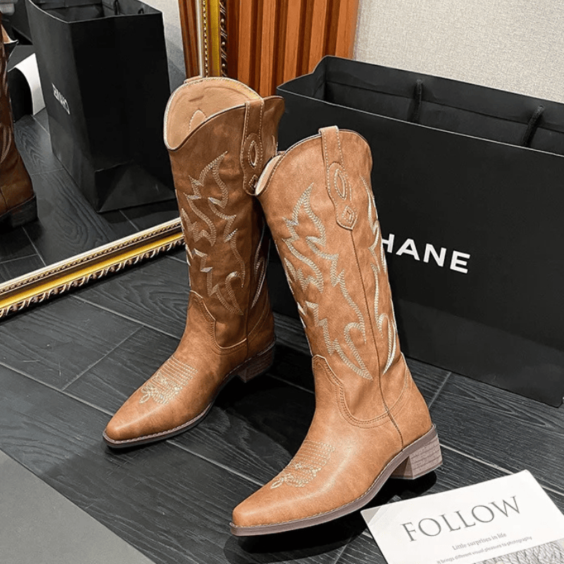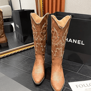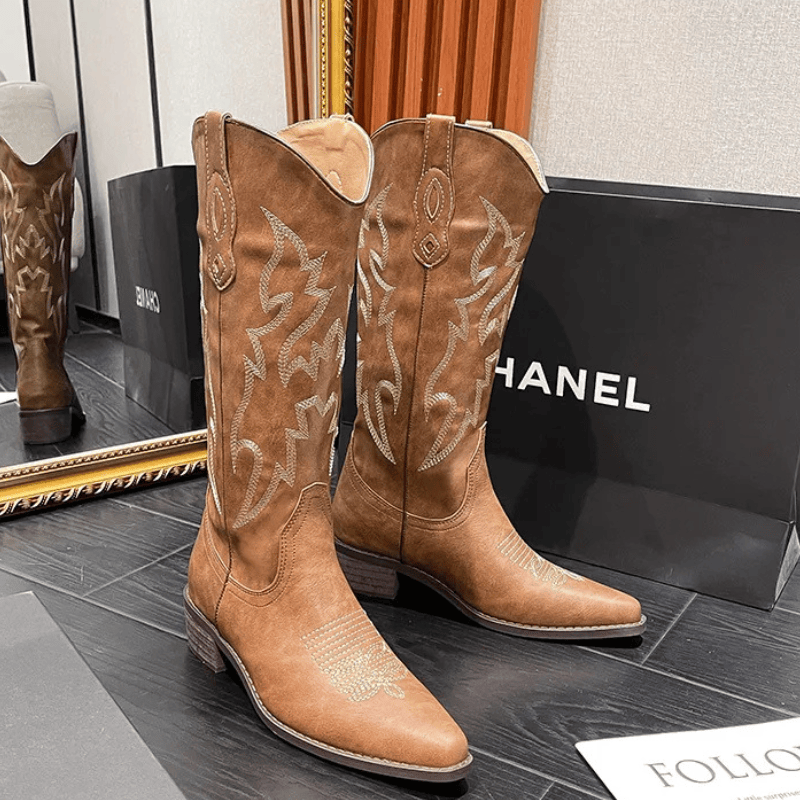 Drömmer du om boots som kombinerar westernvibbar med stilren elegans? Då är våra äkta cowboy boots i brunt något för dig. De spetsiga tåpartierna, den broderade ytan och den mjuka insidan i plysch gör dem både snygga och bekväma – oavsett om du bär dem till vardags eller på fest.