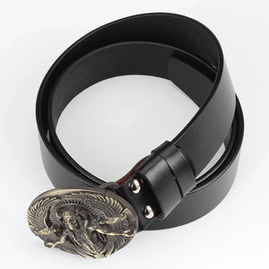 Äkta cowboyläderbälte med antikt westernspänne som ger din look kraft och karaktär