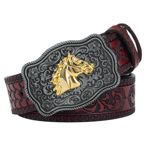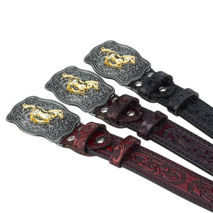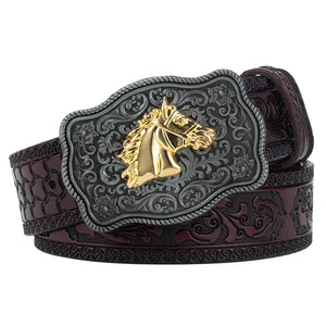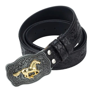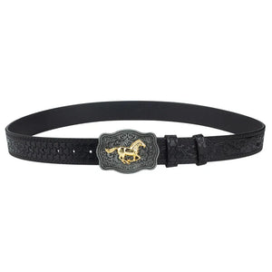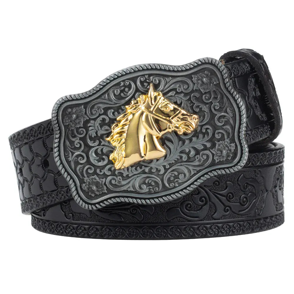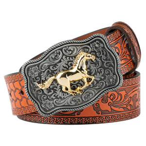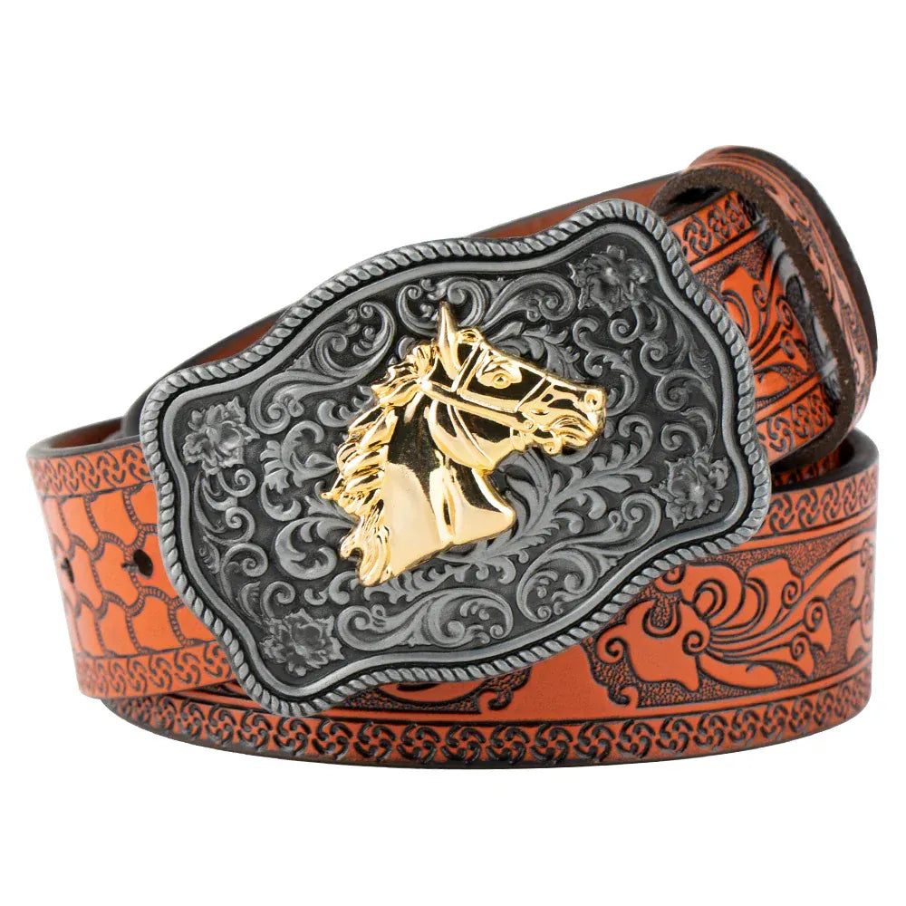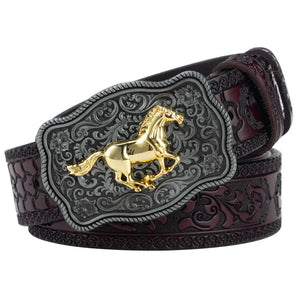 Äkta cowboyläderbälte med hästmotiv: kraft, stil och frihet i ett