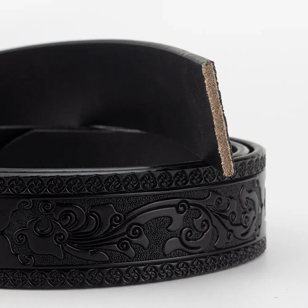 - Detaljerad gravyr – Välarbetade mönster på både bälte och spänne för en autentisk western-look.