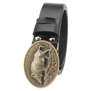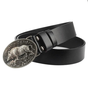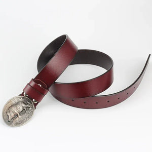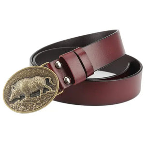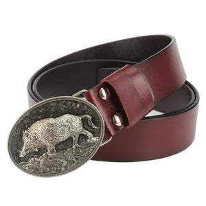 Äkta westernläderbälte med vildsvinsspänne som fångar din äventyrliga själ