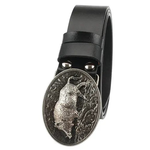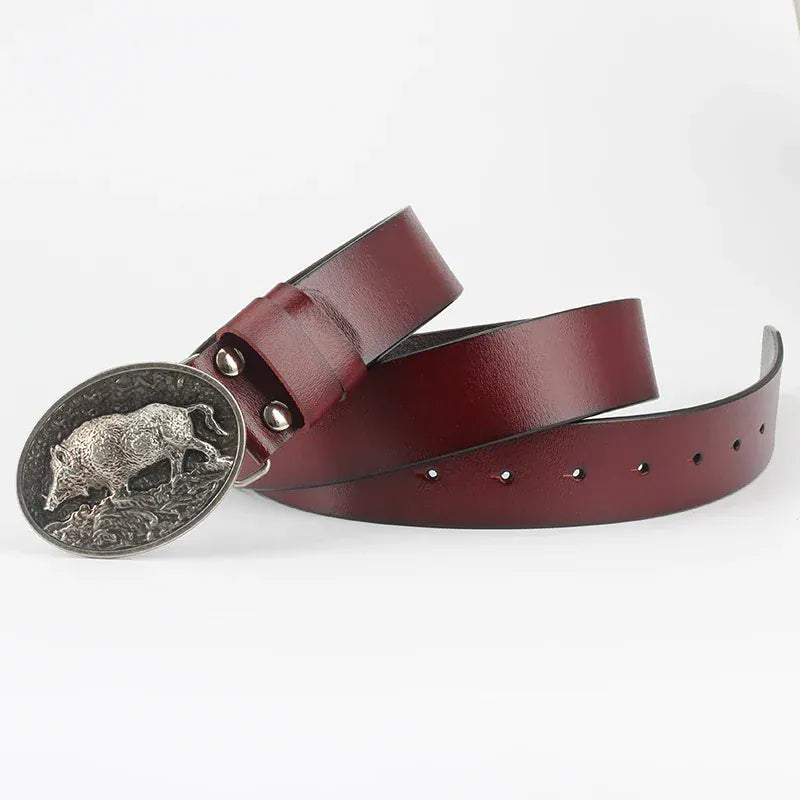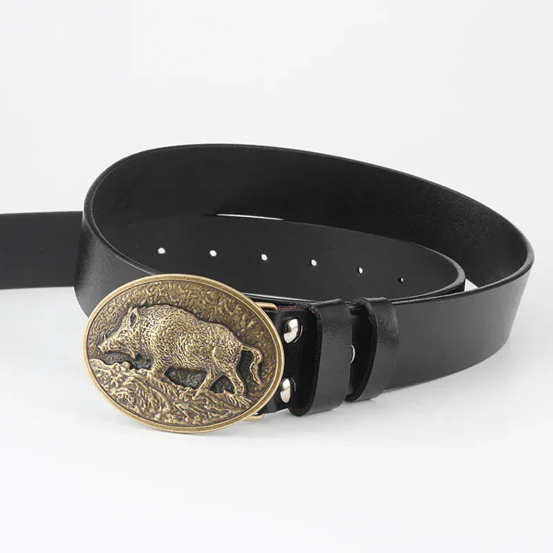 - Detaljerat metallspänne: Vildsvinsmotivet ger karaktär och unik charm.