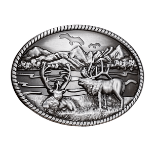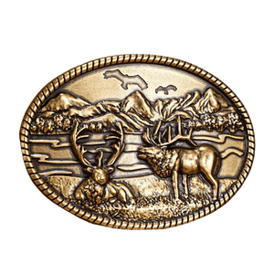 Fånga känslan av frihet, styrka och äventyr med ett bältesspänne som berättar en historia. Detta mästerverk i metall visar en detaljerad jaktscen med majestätiska älgar i en nordisk naturmiljö – perfekt för dig som vill bära en bit av vildmarken vid din sida.