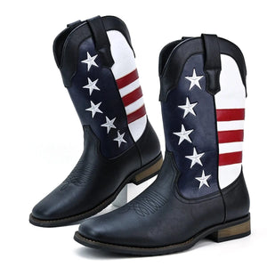 Brun eller svart? Du väljer – men en sak är säker: du kommer att älska våra Amerikanska Cowboy Boots med flaggmönster