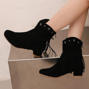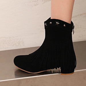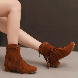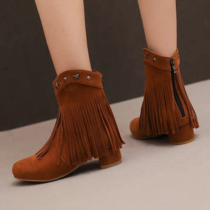 Ankelboots i Mocka med Fransar