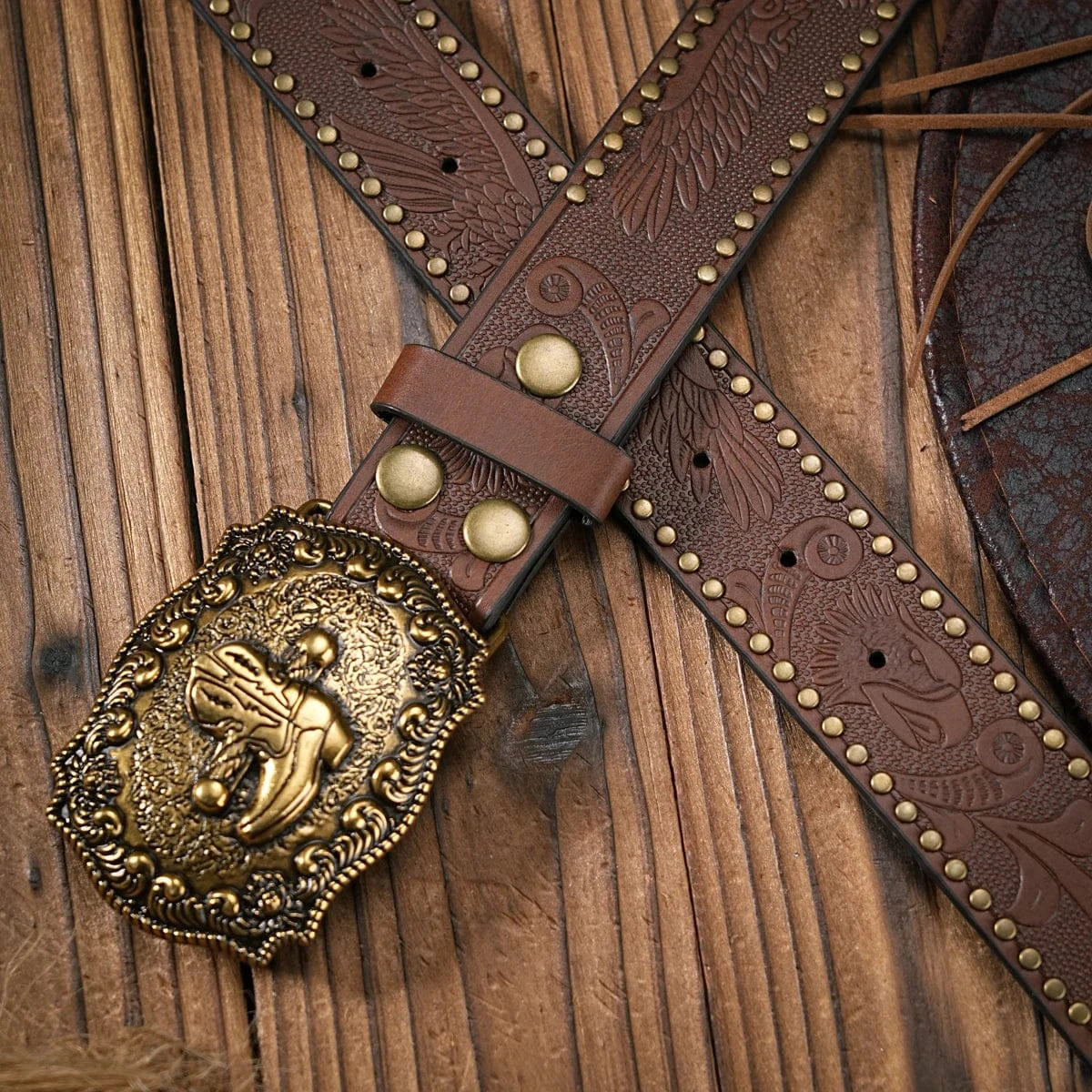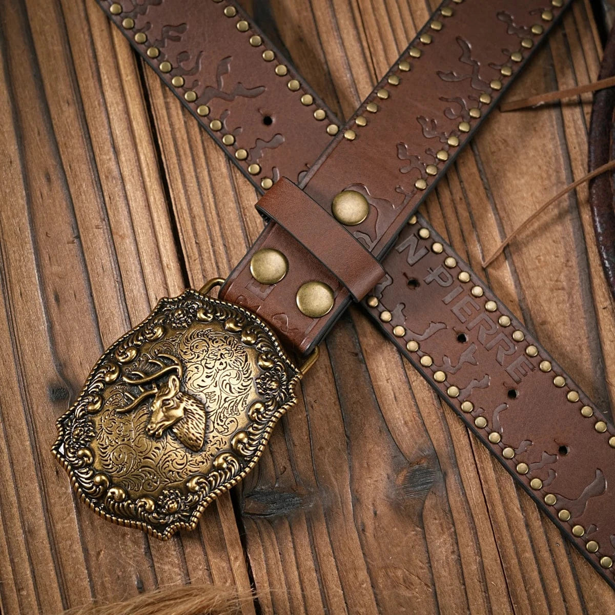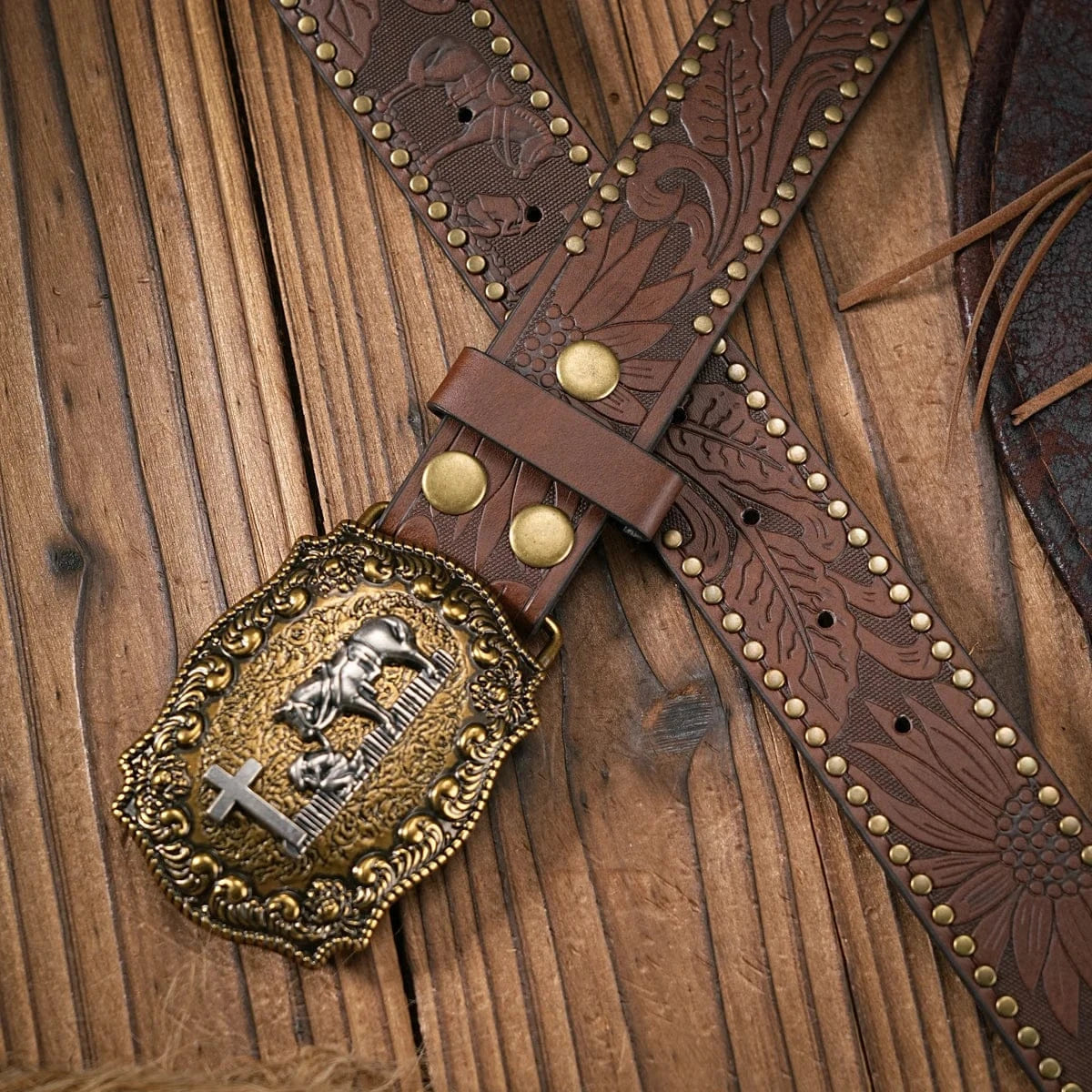 - Tidlös westernstil – Detaljerat spänne med präglade motiv för en autentisk look.