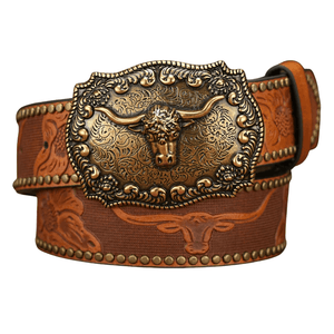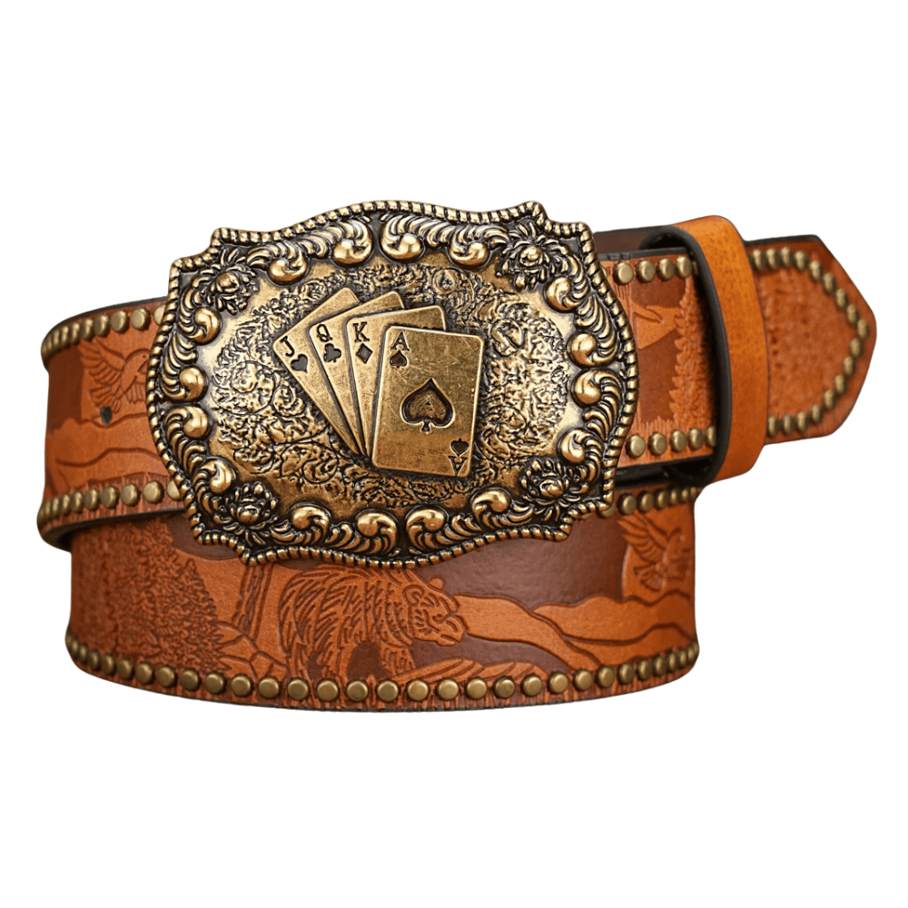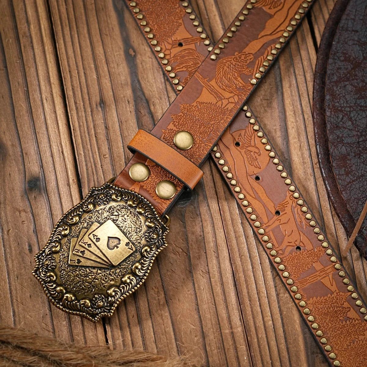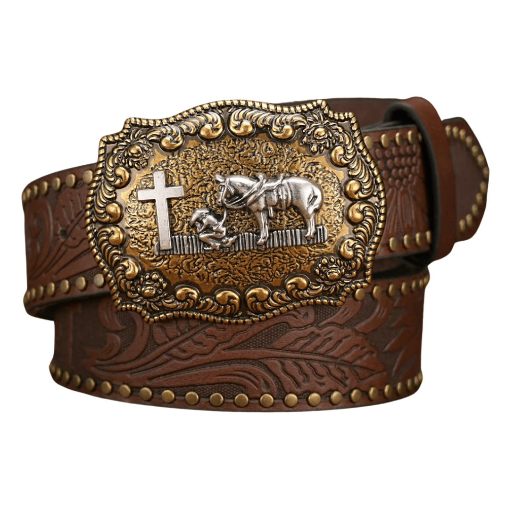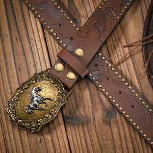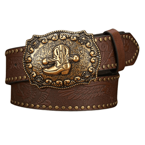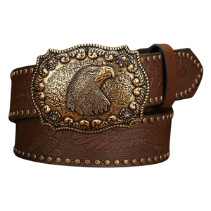 - Tidlös westernstil – Detaljerat spänne med präglade motiv för en autentisk look.