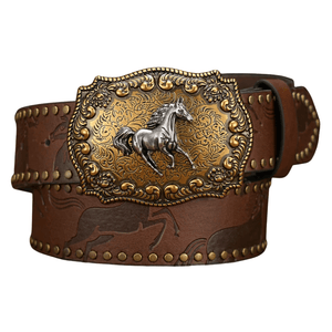 Upptäck charmen i vårt Antika cowboybälte, där klassiskt hantverk möter modern komfort. Spännet i antikmässing med elegant hästmotiv ger varje outfit en unik karaktär. Bältet är perfekt för dig som älskar en rustik, självsäker stil — oavsett om du bär det till jeans, boots eller en skinnjacka.