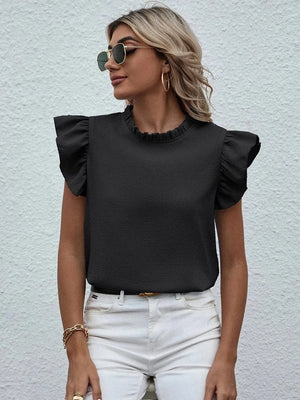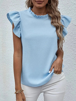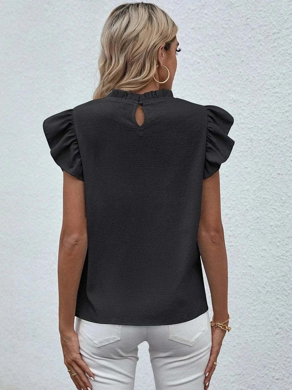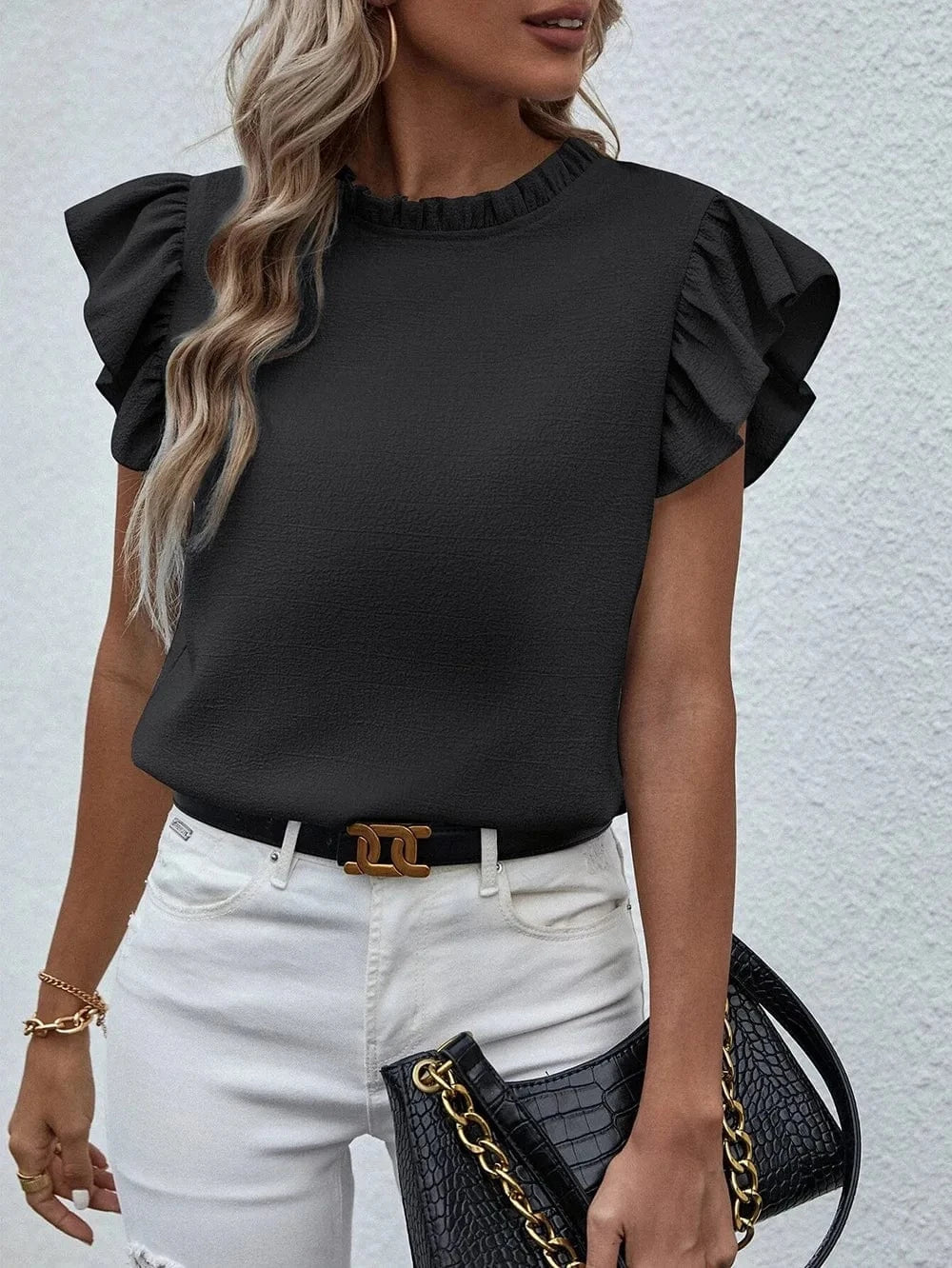 - Feminin volangdetalj – fjärilsärmarna skapar en romantisk och elegant look.
