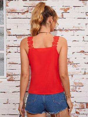Upplev en sval och elegant känsla i sommar med vår ärmlösa blus, utsmyckad med vacker virkad brodyr och subtila blommiga detaljer. Perfekt för allt från semesterkvällar till vardagligt chic.
