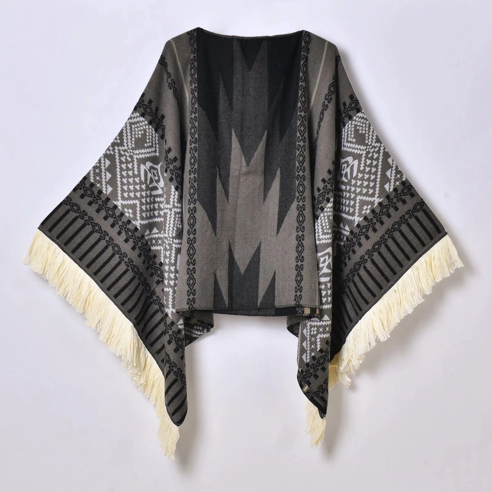 Låt din vardag få en färgklick med vår Aztec poncho – en mångsidig följeslagare som förvandlar även de enklaste outfits till något unikt och iögonfallande. Perfekt för dig som älskar en fri, västerninspirerad känsla.