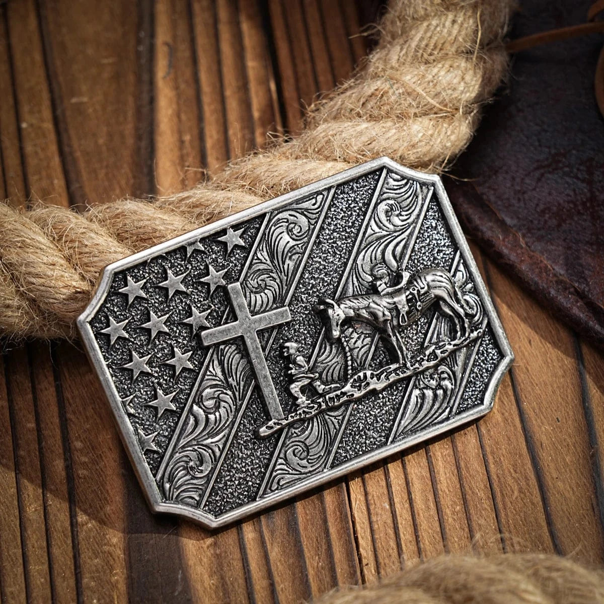 Bältespänne cowboy kors flagga kristen USA – en stark symbol i westernstil