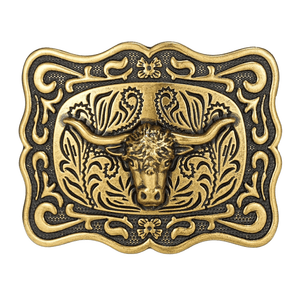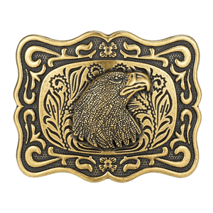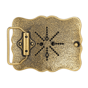 Låt din outfit tala för sig själv med detta bältespänne i antik stil. De kraftfulla symbolmotiven och den detaljerade designen förmedlar styrka, frihet och den äkta westernkänslan.
