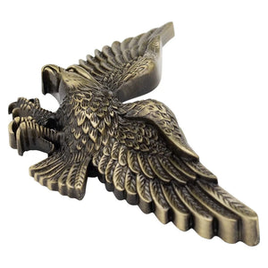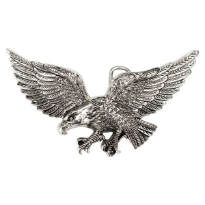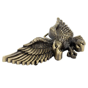 Detta bältespänne i form av en örn med utslagna vingar är en kraftfull symbol för styrka, frihet och mod. Med sina intrikata detaljer blir det en accessoar som omedelbart fångar uppmärksamheten.