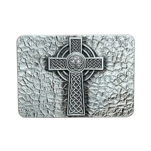 Detta bältespänne kombinerar tidlös tro med kraftfull design. Den keltiska korssymbolen i relief på en texturerad silveryta ger dig en accessoar som både är elegant och fylld av mening.