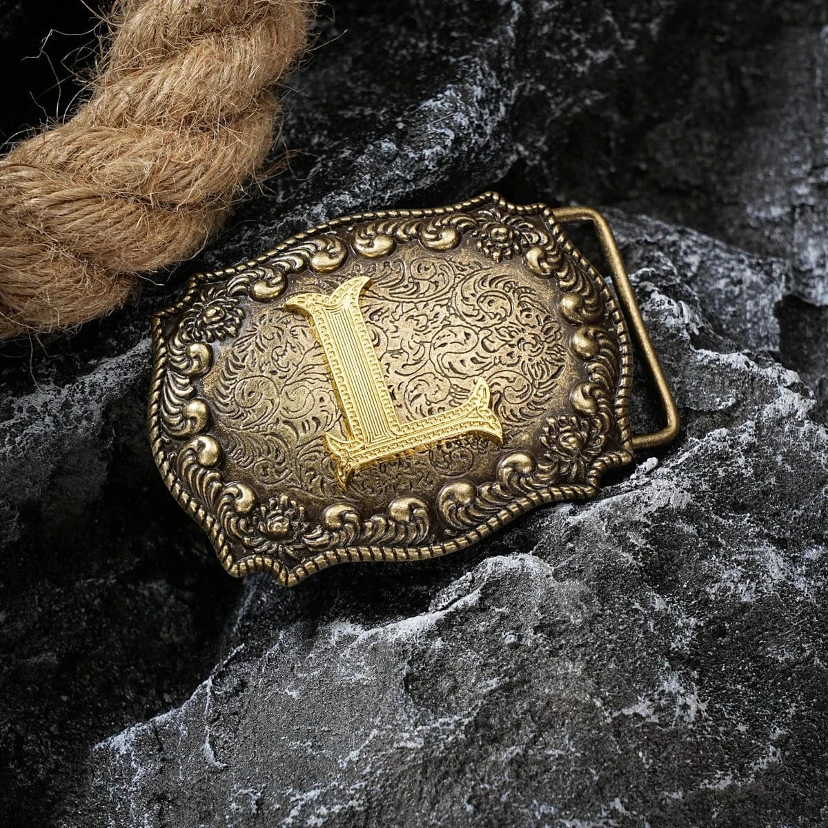 Bältespänne med bokstav i antik westernstil – din personliga präriesymbol