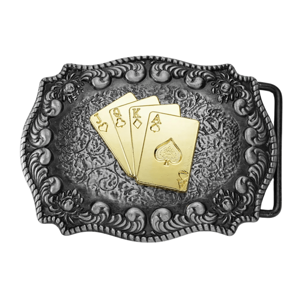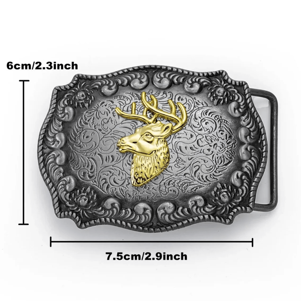 - Unik design i relief – motiv som hjorthuvud, långhorn, häst, örn, kortlek, stövlar och dödskalle gör varje spänne till en personlig symbol.