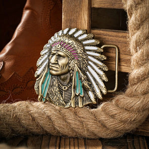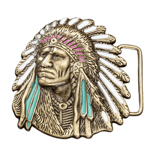 Bältespänne med hövding i fjäderskrud – en djärv detalj för din westernstil