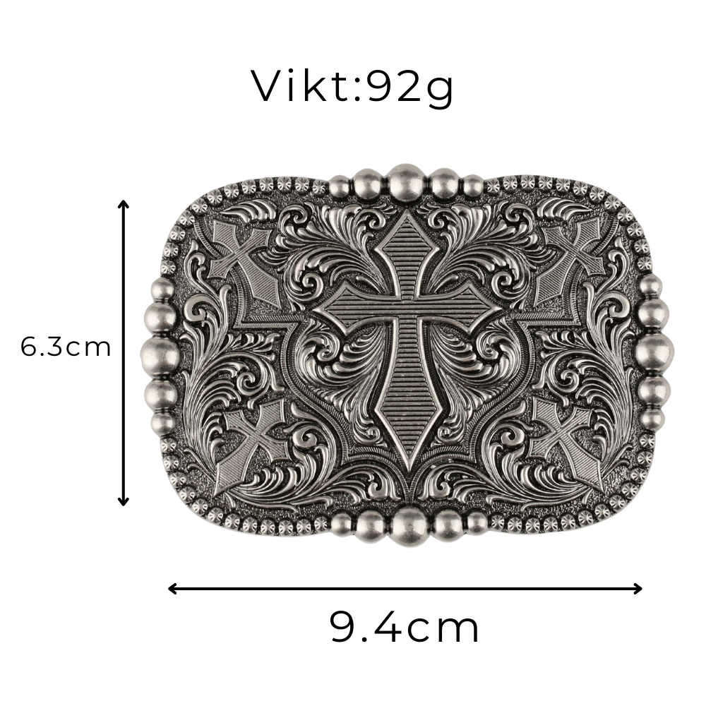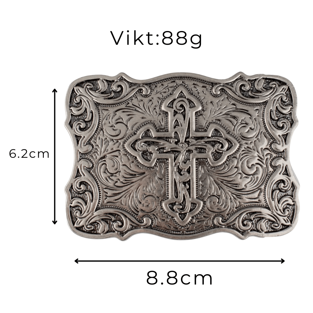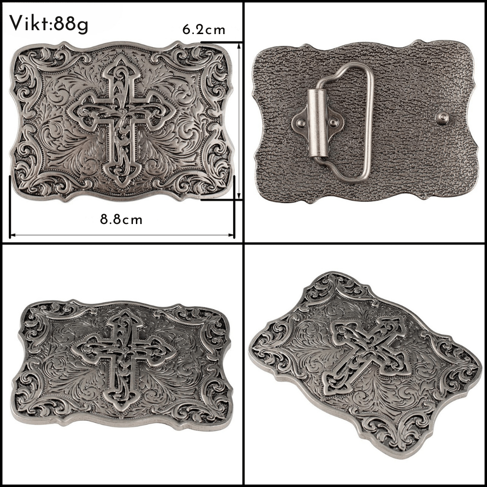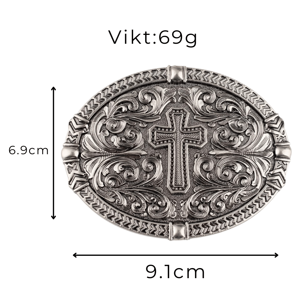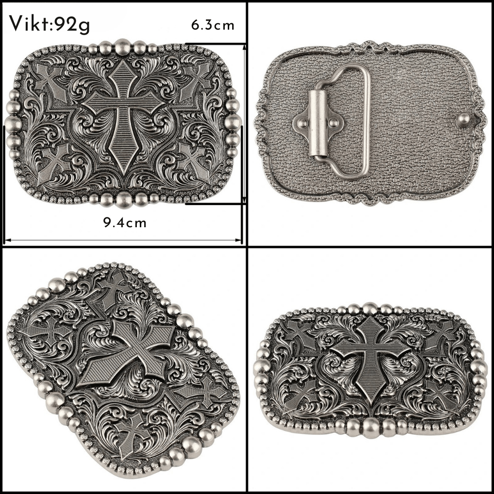 Bältespänne med kors och ornament i westernstil – kraft och elegans i ett