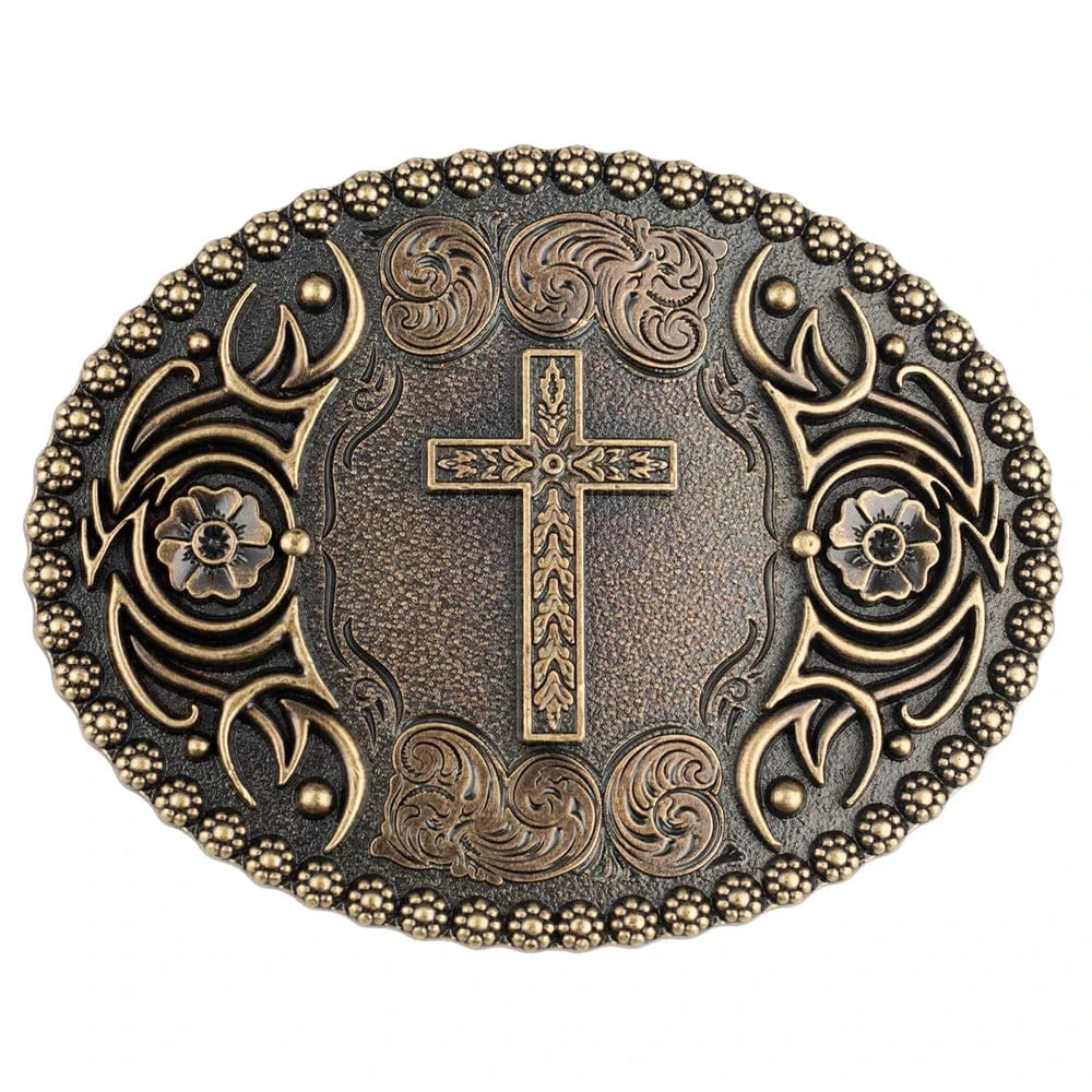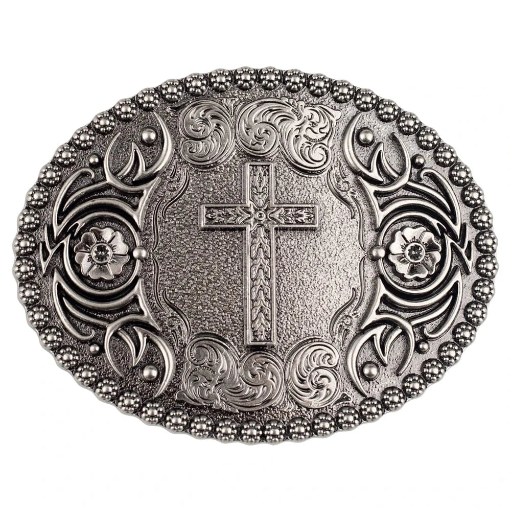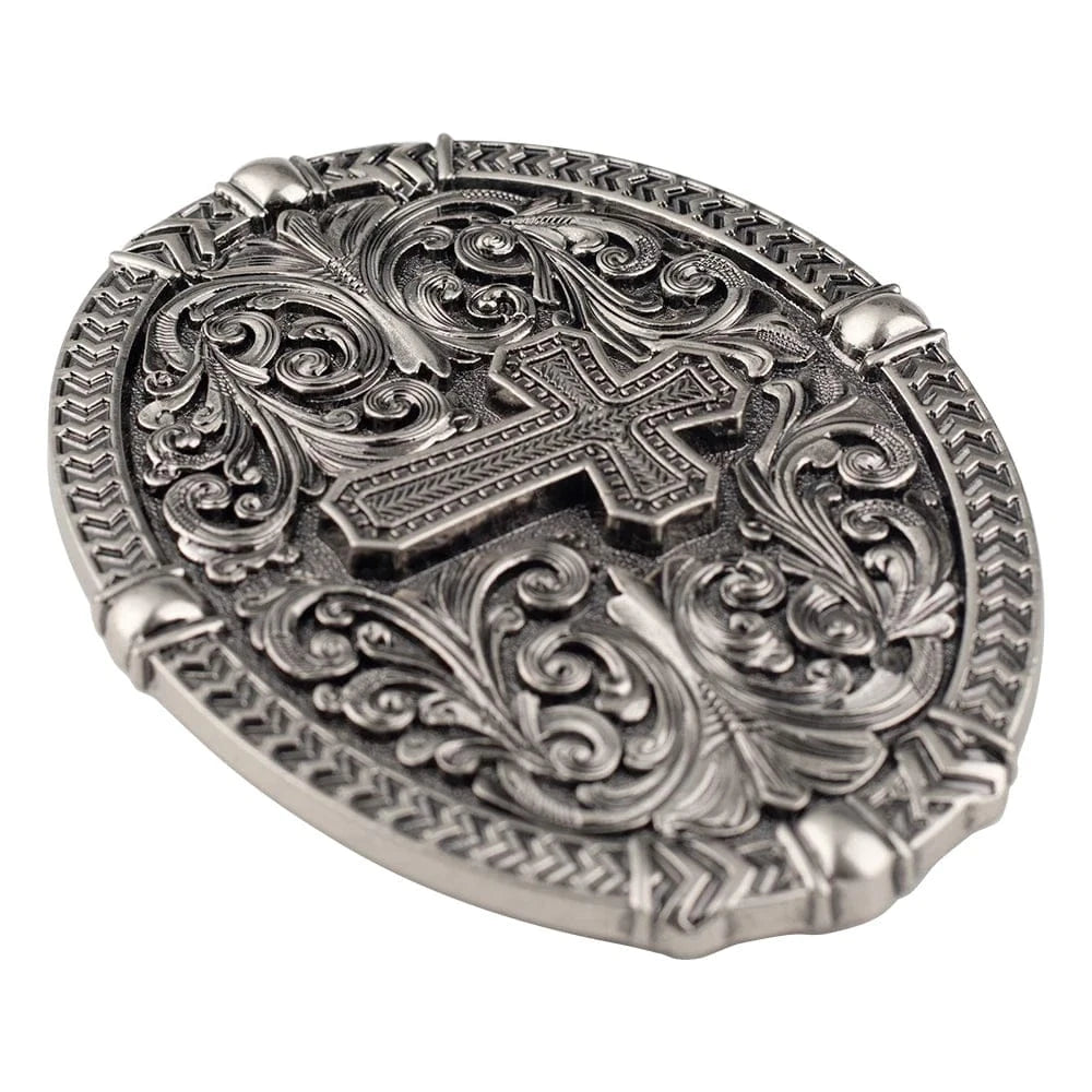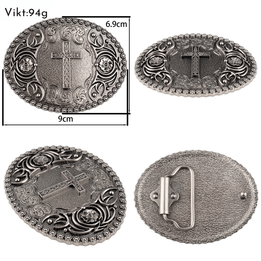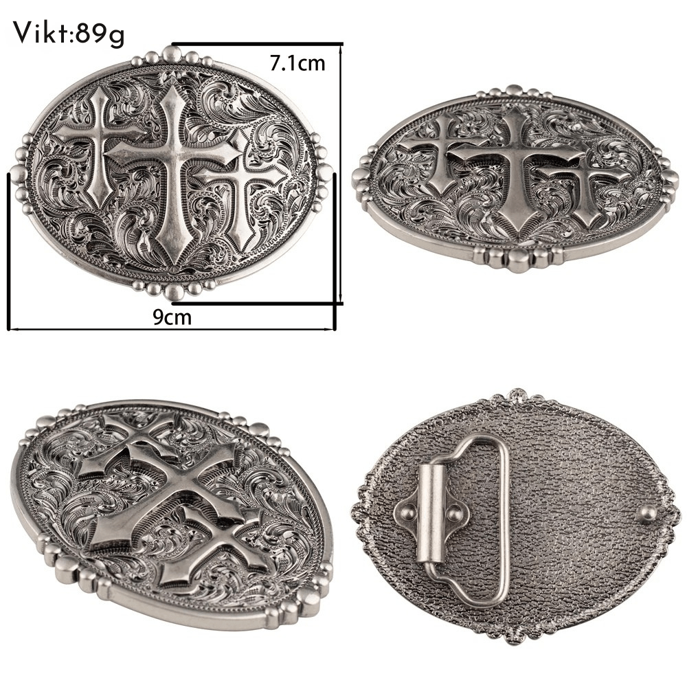 Bältespänne med kors och ornament i westernstil – kraft och elegans i ett