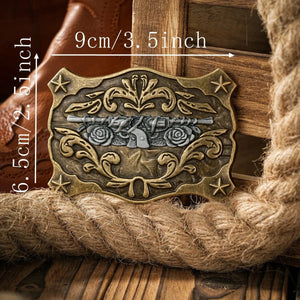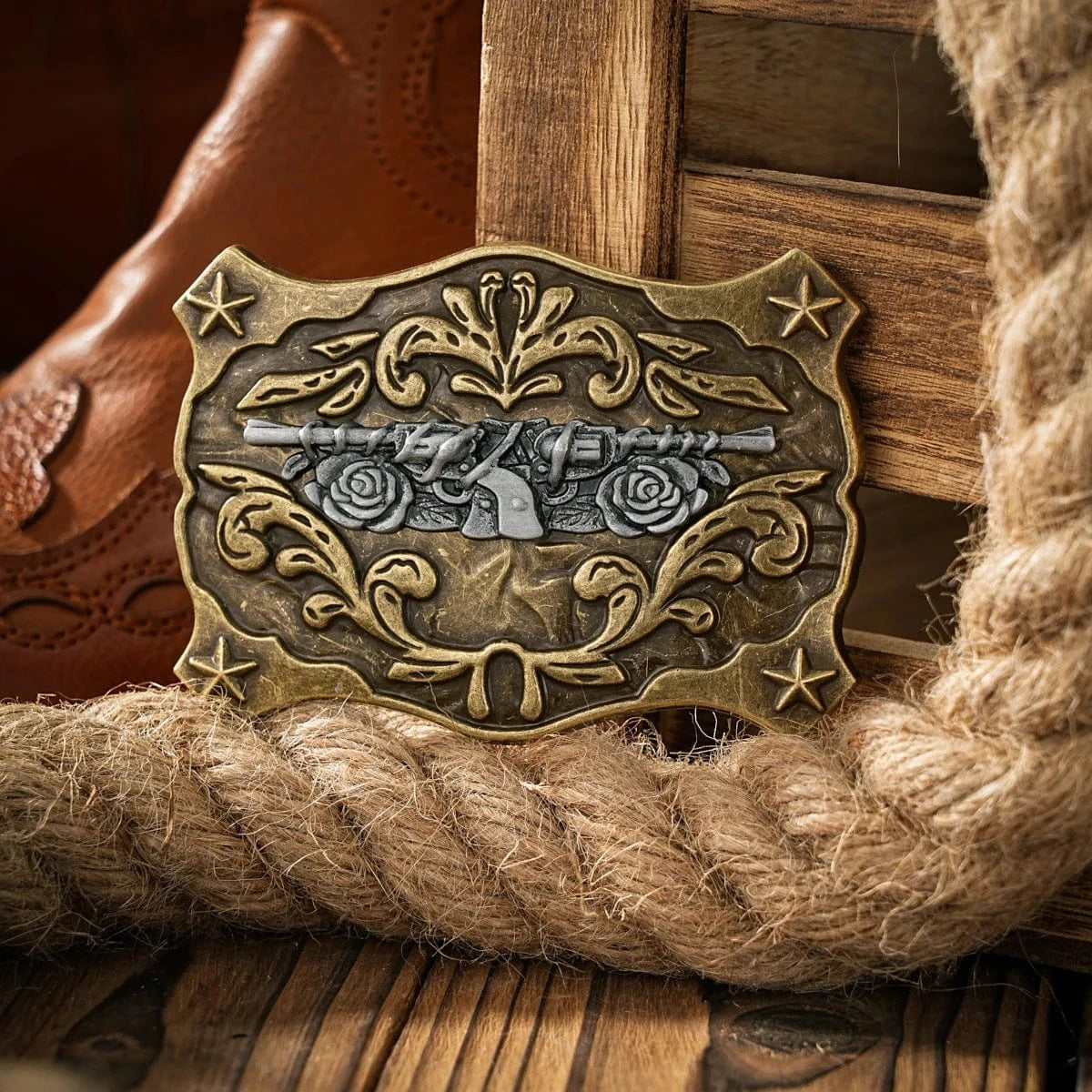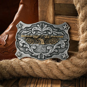 Bältespänne med revolvrar och rosdekor i västernstil – för dig som vill bära en bit av prärien