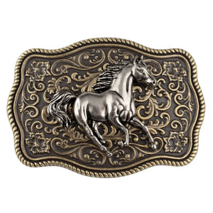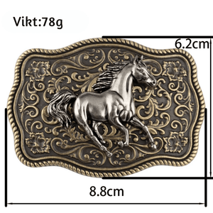Låt detta bältespänne bli symbolen för din inre styrka och frihet. Med sin detaljerade design av en kraftfull springande häst ger det din outfit en känsla av både vild elegans och tidlös cowboyanda.
