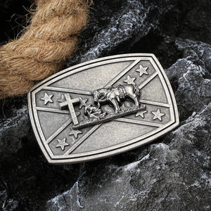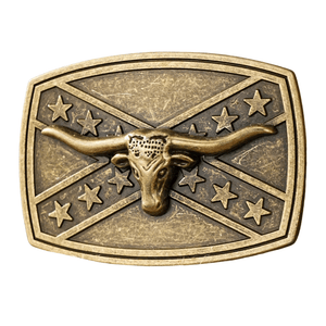 Bältespänne med sydstatsflagga och westernmotiv – gör din look legendarisk