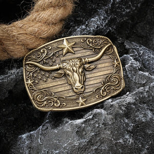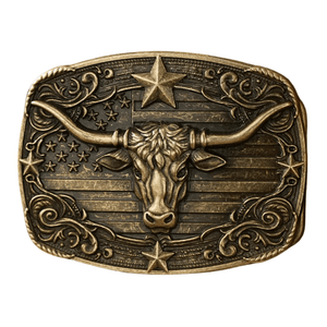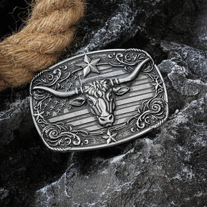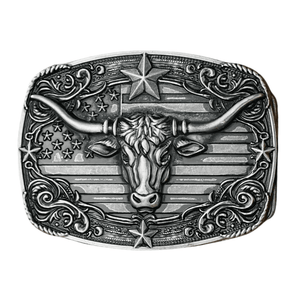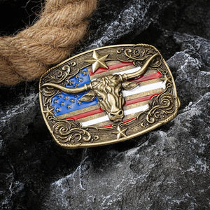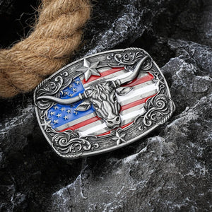 Bältespänne med tjurhuvud och USA-flagga i westernstil – visa din styrka med varje steg