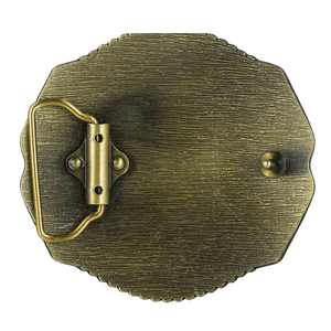 Låt din outfit tala för sig själv med detta mäktiga bältespänne. Den oktagonala formen, kombinerad med den detaljerade tjurskallen i relief, ger en rå men sofistikerad westernkänsla som direkt för tankarna till vidderna, cowboylivet och äkta hantverkstradition.