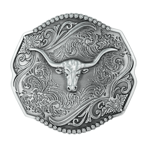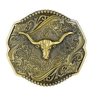 Bältespänne oktagonal med tjurskalle i relief – skapa din autentiska westernstil