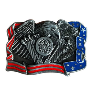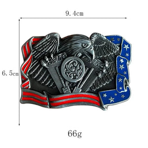 Ge din outfit en extra dos attityd med vårt bältespänne som kombinerar örnens styrka, motorcykelns råa kraft och USA-inspirerad design. Ett perfekt val för dig som vill visa upp din frihetliga livsstil och känslan av vägar utan slut.