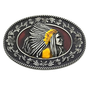 Ge din outfit ett starkt och autentiskt uttryck med detta unika bältespänne. Den detaljerade designen med indianhövding och fjäderprydd huvudbonad gör det till en iögonfallande accessoar för varje tillfälle.