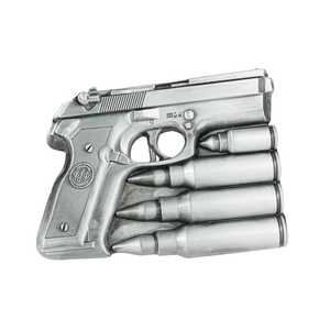 Sätt tonen med en accessoar som ingen kan ignorera. Det här bältespännet i form av en pistol med patroner ger din outfit en rå, autentisk känsla – perfekt för dig som vill sticka ut och bära westernstilen med självsäkerhet.