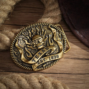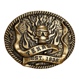Ett bältespänne som andas kraft, historia och djärvhet. Med sin brinnande dödskalle och Texas-estetik får du en accessoar som gör varje outfit oförglömlig.