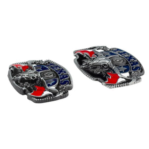 Det här bältespännet är skapat för dig som vill bära Texas stolthet och westerntradition med stil. En kraftfull tjurskalle, omgiven av den ikoniska Texas-flaggan, gör detta spänne till en självklar detalj för dig som vill sticka ut.