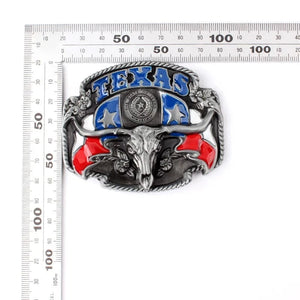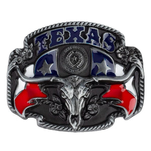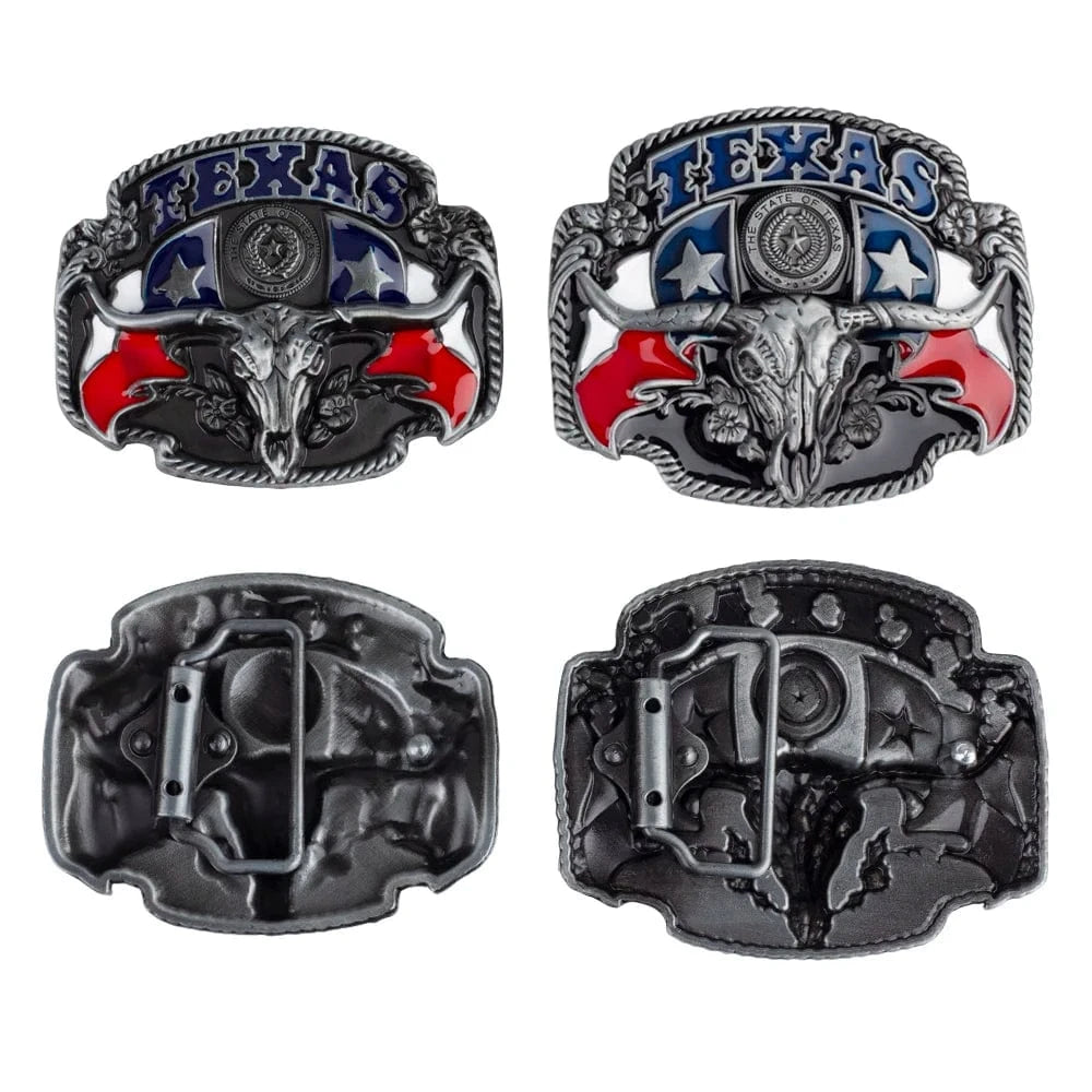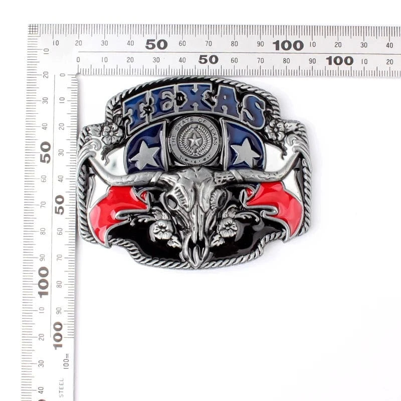 Bältespänne Texas med tjurskalle och flagga – visa din cowboy-stolthet