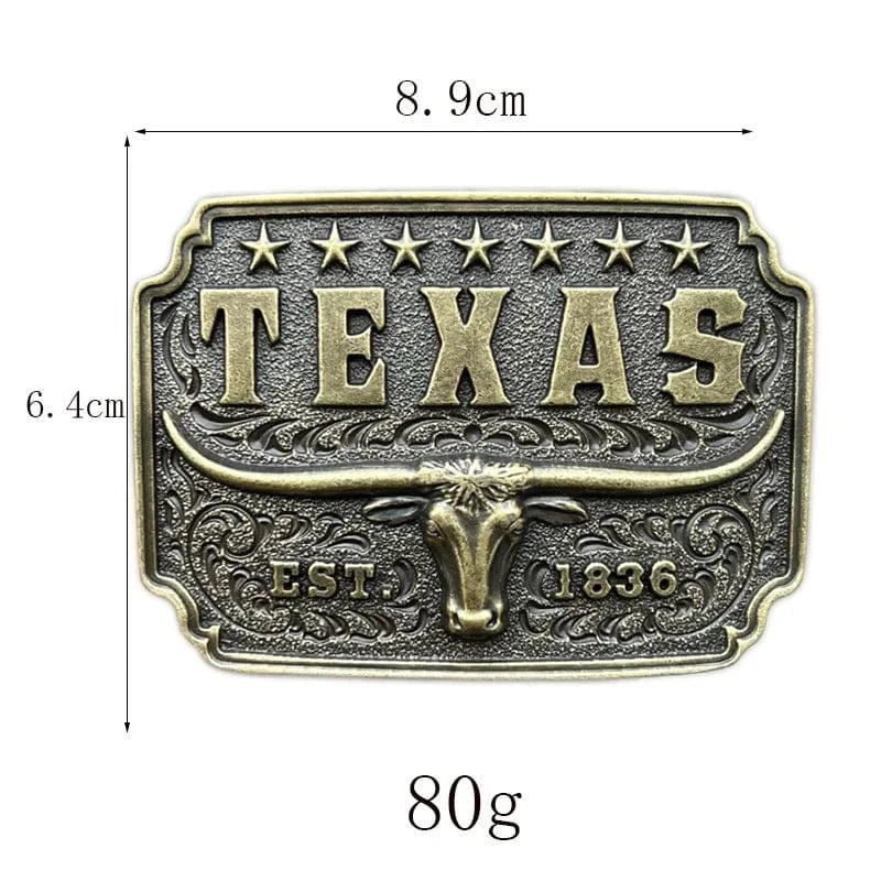 Ge din outfit en kraftfull känsla av Texas-andan med detta robusta bältespänne. Perfekt för dig som vill bära en bit av westernkulturen i vardagen eller till speciella tillfällen.