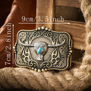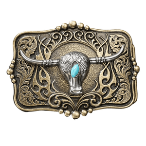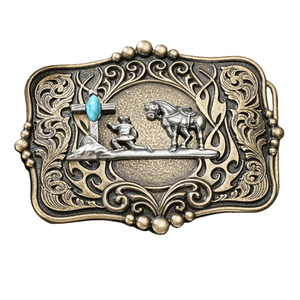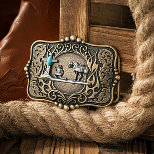 Bältespänne western med turkos sten och motiv i relief – ett smycke för din cowboystil