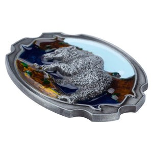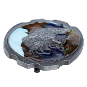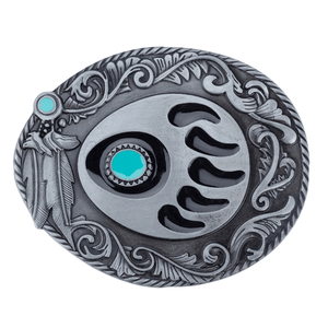 Ge din outfit en rå och naturlig styrka med detta bältesspänne i björnmotiv. En accessoar som fångar känslan av frihet, naturens kraft och den tidlösa westernandan.