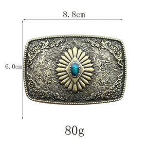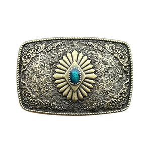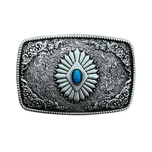 Lyft din western-look med ett bältesspänne som kombinerar hantverk, historia och stil. Den detaljerade ytan i celtiskt inspirerat mönster och den turkosa stenen i centrum gör detta spänne till ett blickfång som aldrig går obemärkt förbi.