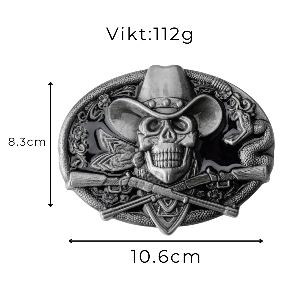 Bältesspänne cowboy dödskalle korsade gevär western stil