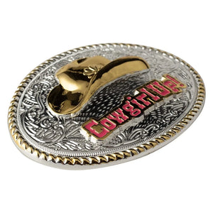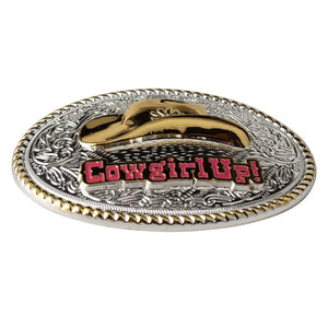 Bältesspänne cowgirl up western stil med guld och silver – för din djärva look