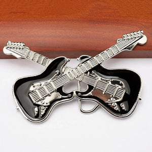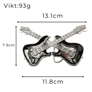 Låt din passion för musik följa med i varje steg. Det här bältesspännet i form av korsade elgitarrer ger din outfit en unik rockig energi som inte går att ignorera.