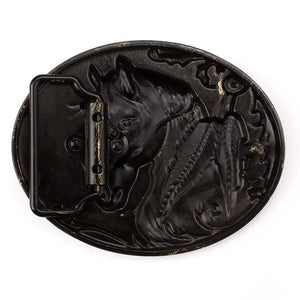 Bältesspänne med hästhuvud och fjädrar