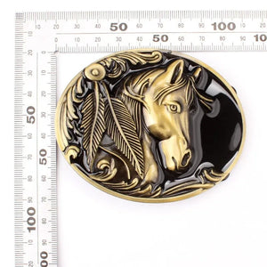 Bältesspänne med hästhuvud och fjädrar – för en äkta westernkänsla i din stil