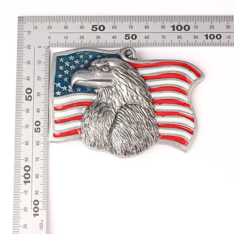 Låt din outfit tala för sig själv med detta ikoniska bältesspänne. Med en ståtlig örn framför den amerikanska flaggan blir din look både djärv och oförglömlig.