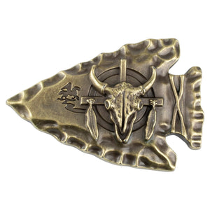 Varför välja ett bältesspänne i form av pilspets med buffelskalle?