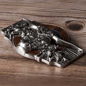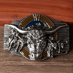 Låt din outfit tala för sig själv med detta bältesspänne Rodeo Longhorn med Cowboys. En hyllning till rodeons vilda energi och den ikoniska longhorn-oxen, perfekt för dig som vill bära en del av westernarvet varje dag.